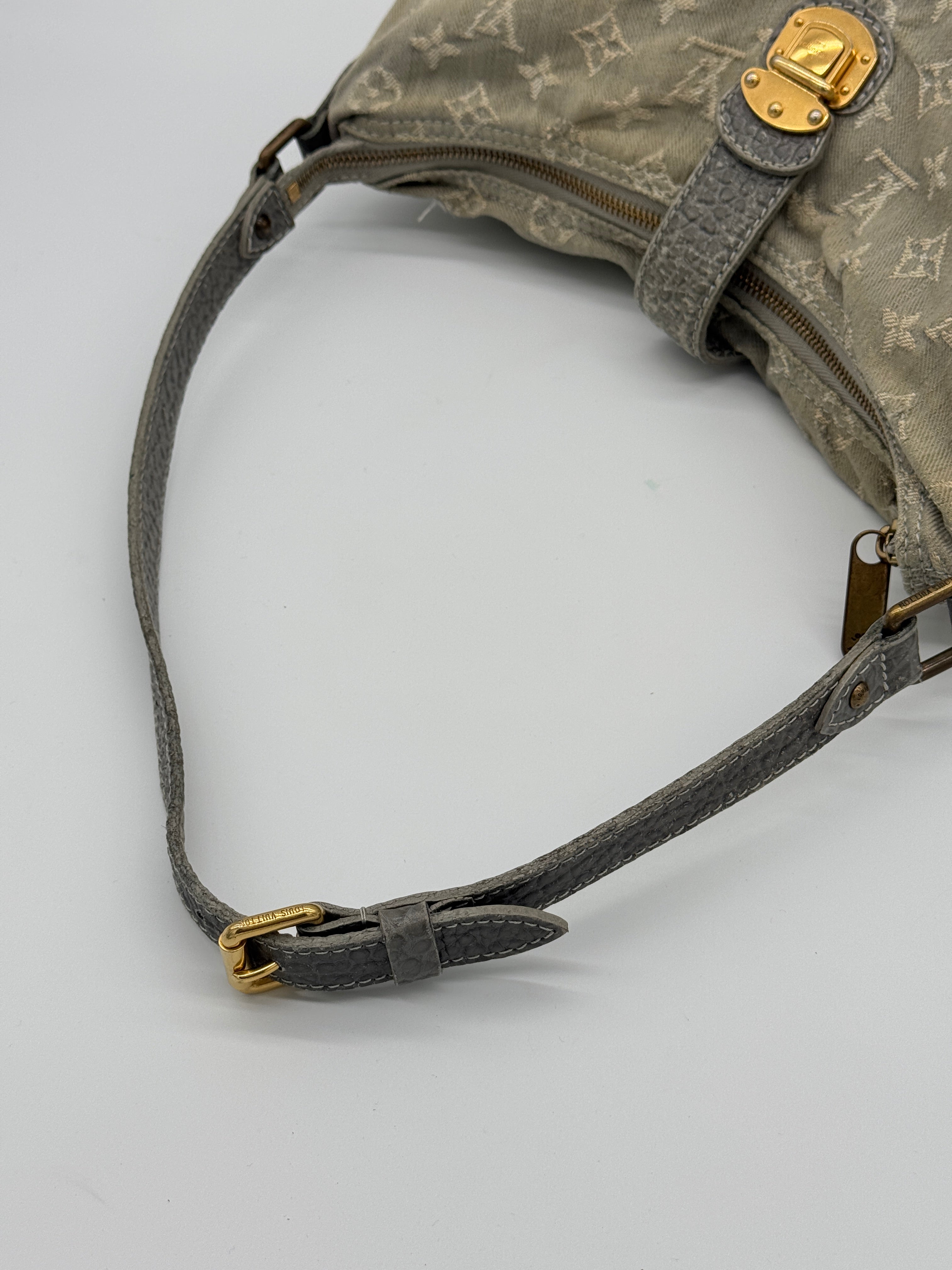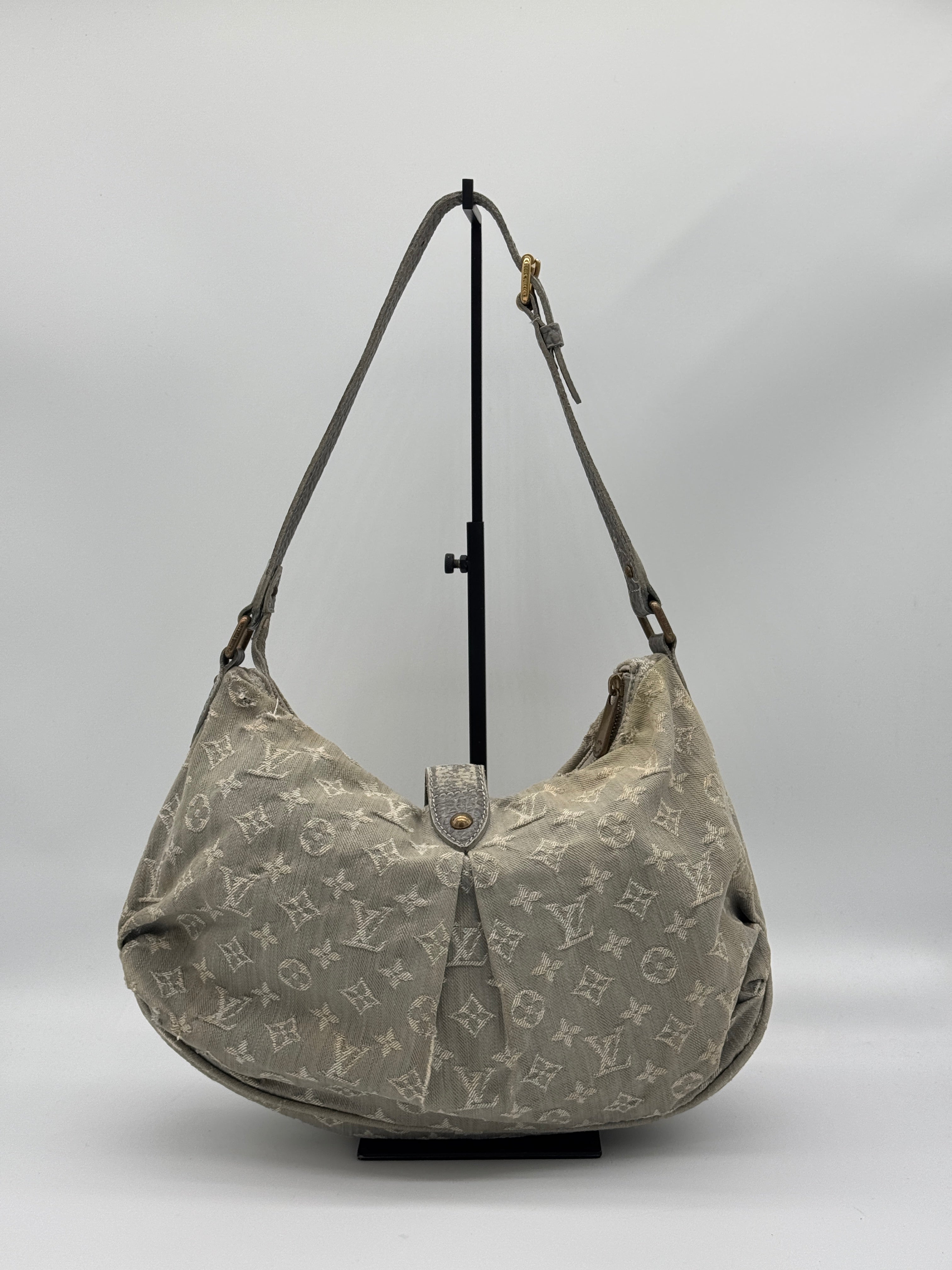 This pre-loved Louis Vuitton Slytree in denim monogram has gold hardware. The item is in a good vintage condition, with general signs of wear. The date code is TH2019 (Made in France in 2009). The measurements are 37 x 23 x 9 cm. The shoulder drop is 52 - 62 cm. This item can be worn crossbody as it comes with an extra piece to lengthen the strap.